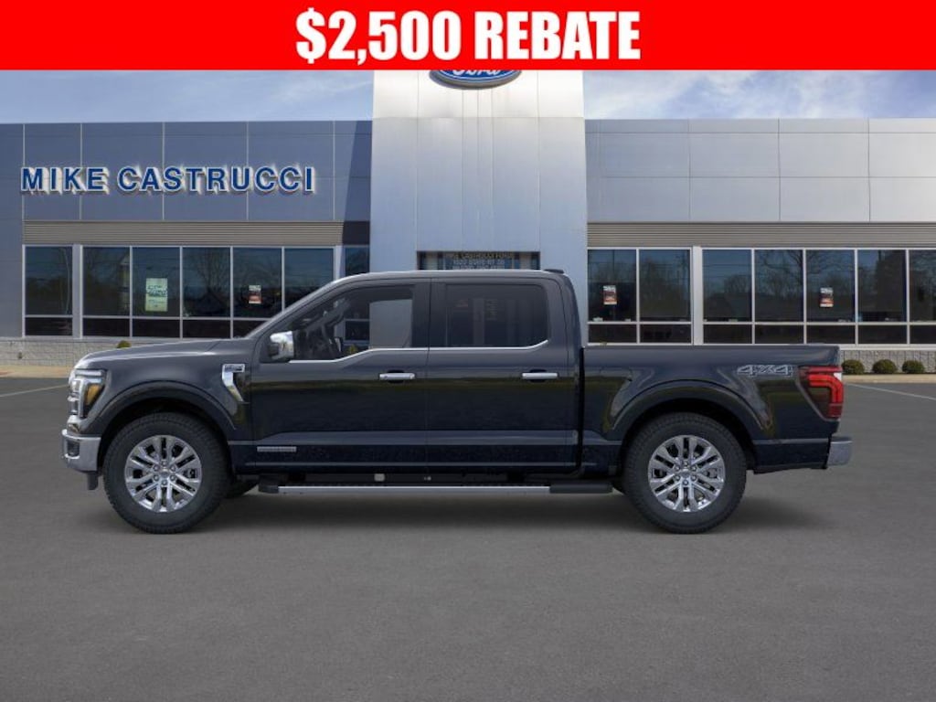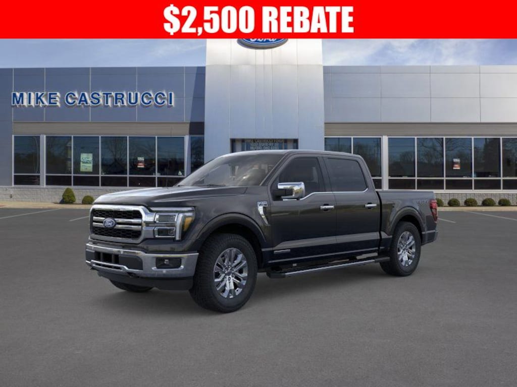 3.5L PowerBoost Full-Hybrid V6, 4WD, 2nd Row Heated Seats, 4 Pickup Box Tie-Down Plates, Ambient Lighting - Ice Blue Color Only, Bed Utility Package, Console Worksurface, Equipment Group 502A High, Heads-Up Display, Illuminated Driver & Passenger Visors, Integrated Trailer Brake Controller, LED Box Lighting, Mobile Office Package, Navigation system: Connected Navigation, Partitioned Lockable Rear Storage, Power Tailgate, Power-Sliding Rear Window, Pro Access Tailgate, Radio: B&O Unleashed Sound System by Bang & Olufsen, Tow/Haul Package, Wheels: 20" Chrome-Like PVD, Wireless Charging. 2025 Ford F-150 Lariat 4WD 10-Speed Automatic 3.5L PowerBoost Full-Hybrid V6 Price includes: $2000 - Retail Customer Cash. Exp. 03/31/2026 $500 - Retail Bonus Cash. Exp. 03/31/2026