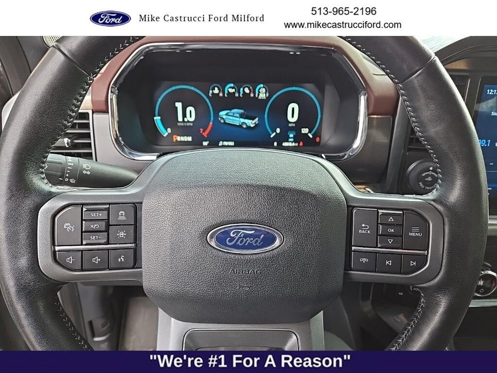 1 OWNER, SIRIUS XM RADIO, LEATHER SEATS, SYNC, NAVIGATION, NON -RENTAL, NON-SMOKER, TRAILER TOW PKG, BACK UP CAMERA, APPLE CAR PLAY / ANDROID AUTO, 3.5L PowerBoost Full-Hybrid V6, 4WD, 2nd Row Heated Seats, 6" Chrome Running Board, Accent-Color Angular Step Bars, Body-Color Front & Rear Bumpers, Box Side Decals, Chrome 2-Bar Grille w/4 Minor Bars, Chrome Door & Tailgate Handles w/Body-Color Bezel, Chrome Single-Tip Exhaust, Chrome Skull Caps on Exterior Mirrors, Class IV Trailer Hitch Receiver, Connected Built-In Navigation, Dark 2-Bar & 1 Minor Bar Style Grille, Equipment Group 502A High, Evasive Steering Assist, Extended Range 36 Gallon Fuel Tank, Ford Co-Pilot360 Assist 2.0, Heated Steering Wheel, Integrated Trailer Brake Controller, Intelligent Adaptive Cruise Control w/Stop & Go, Intersection Assist, Lariat Chrome Appearance Package, Lariat Sport Appearance Package, Leather-Trimmed Bucket Seats, LED Projector w/Dynamic Bending Headlamps, Max Trailer Tow Package, Onboard 400W Outlet, Power Glass Sideview Mirr w/Chrome Skull Caps, Power Tilt/Telescoping Steering Column w/Memory, Pro Trailer Backup Assist, Radio: B&O Sound System by Bang & Olufsen, Rain-Sensing Wipers, Speed Sign Recognition, Universal Garage Door Opener, Wheels: 18" 6-Spoke Machined Aluminum, Wheels: 18" Chrome-Like PVD.